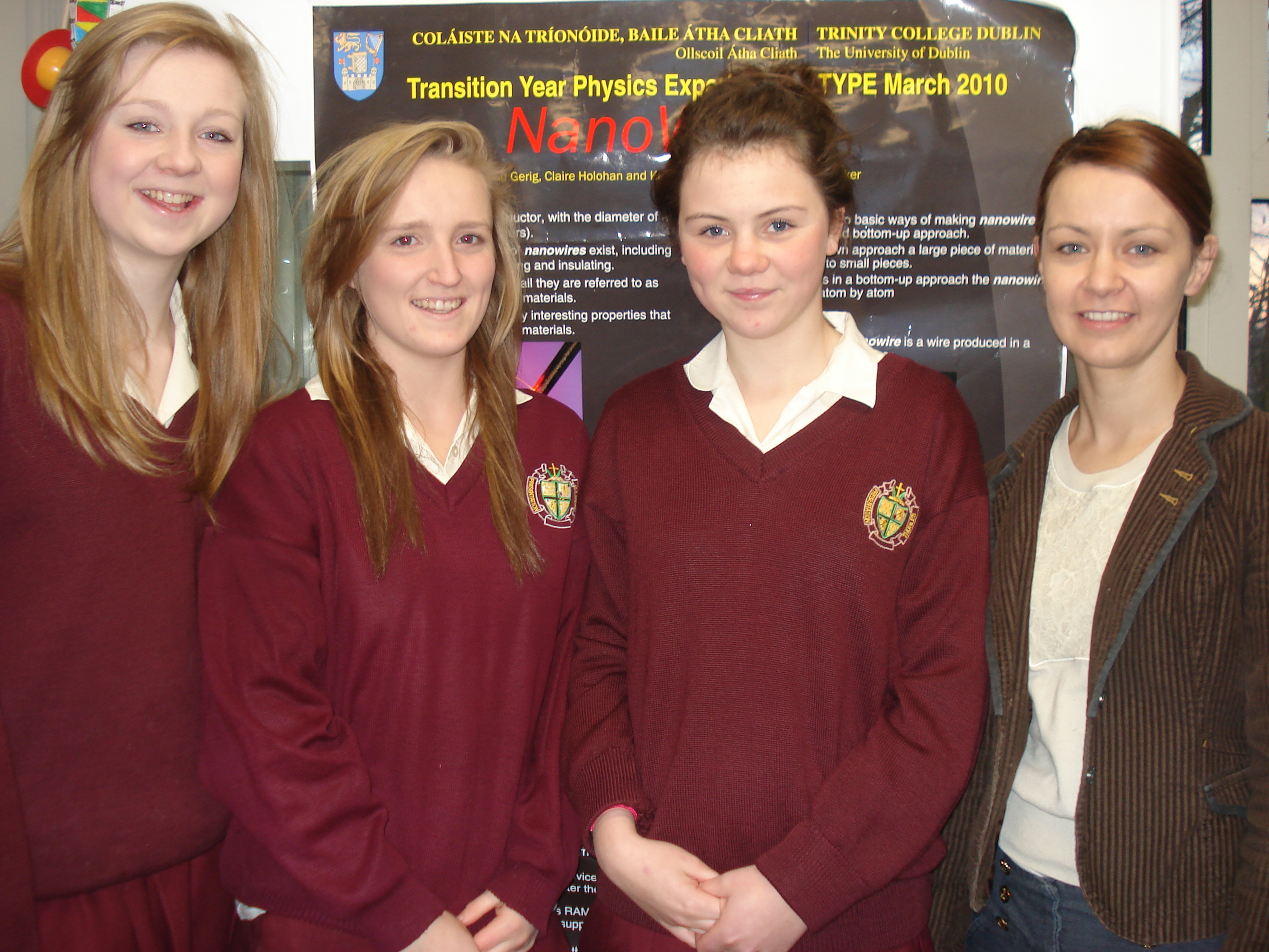 The survey, conducted among 50 Irish and 50 German women was conducted by students Alison Kelly, Sarah Jane O’Riordan, and Orlaith Quigley. The survey was done with the guidance of their teacher Emma Kavanagh. [The three students and their teacher, Emma, are pictured here above]