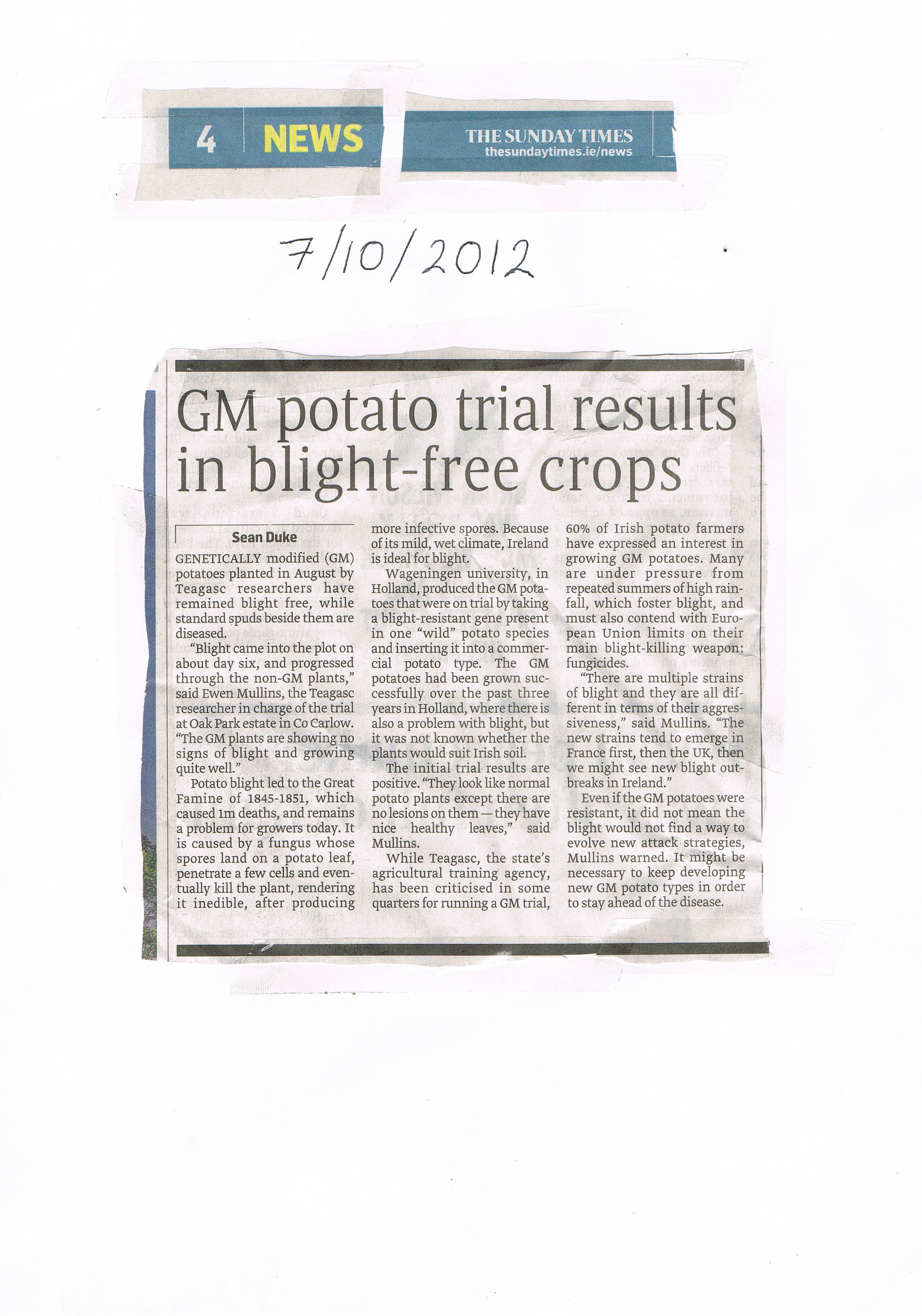 The apparent success of the trial opens the door for Irish farmers to use GM potatoes that are resistant to blight, which remains a major problem in Ireland.