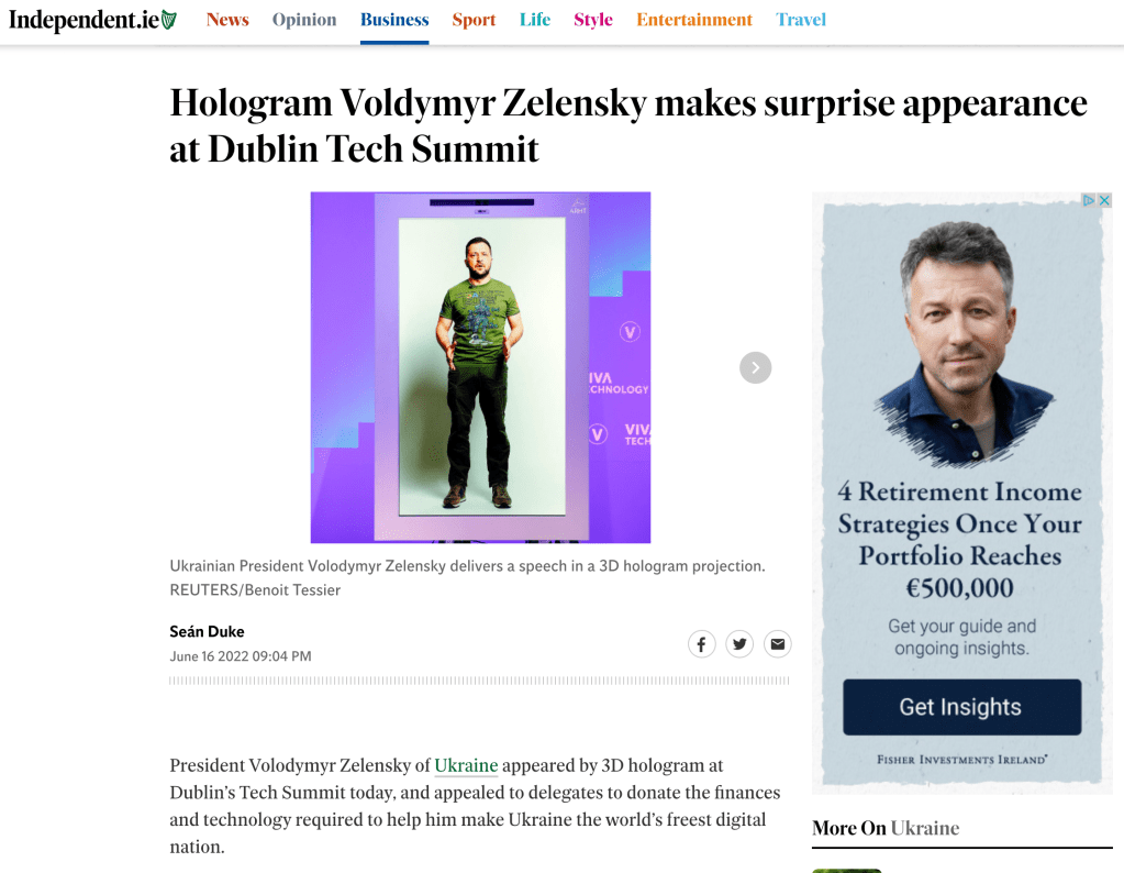3D HologramDigital FreedomDigital UkraineDublin Tech Summit 2022HologramsUkraineVoldymyr ZelenskyZelensky