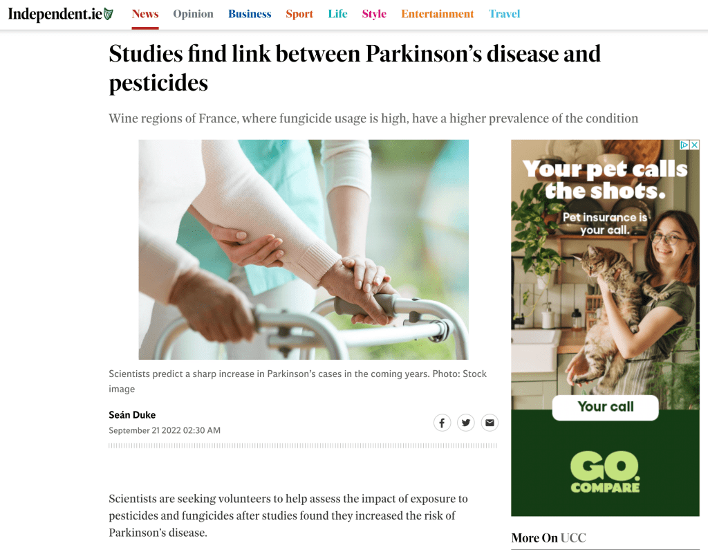 AgeingAideen Sullivan UCCFungicidesGardeningGolfLucy Collins-Stack UCCParkinson's DiseasePesticides