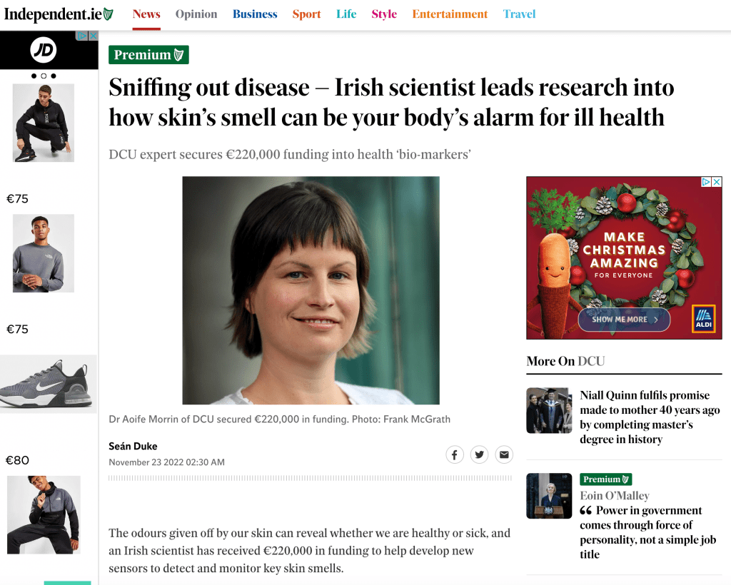 Sniffing out disease – Irish scientist leads research into how skin’s smell can be your body’s alarm for ill health