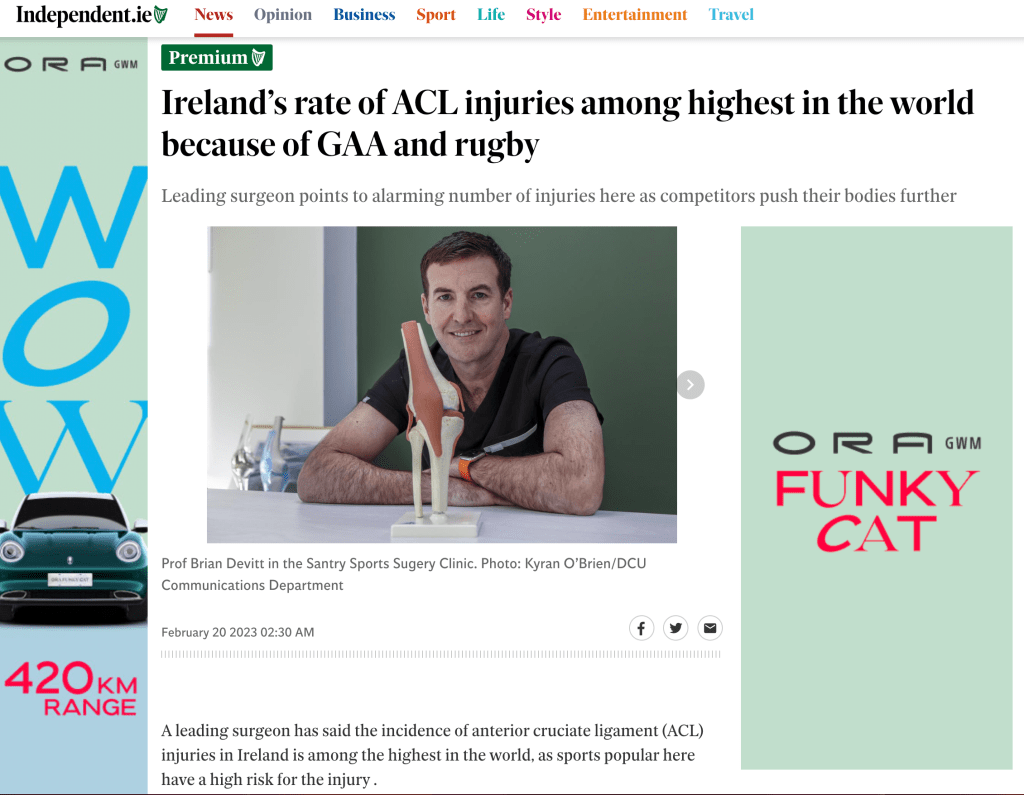 Ireland’s rate of ACL injuries among the highest in the world